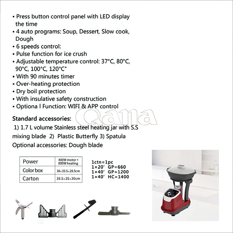 • Variable 12 speeds control: Speed 1-5 for kneading; Speed 6-11 for blending; Speed 12 for turbo blending
